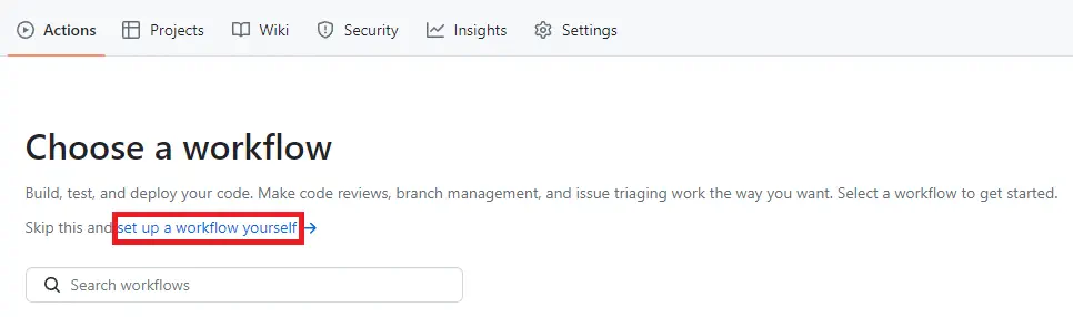 ymlファイルはリポジトリの「Actionsタブ「の「set up a workflow yourself」からでも作成することができます。