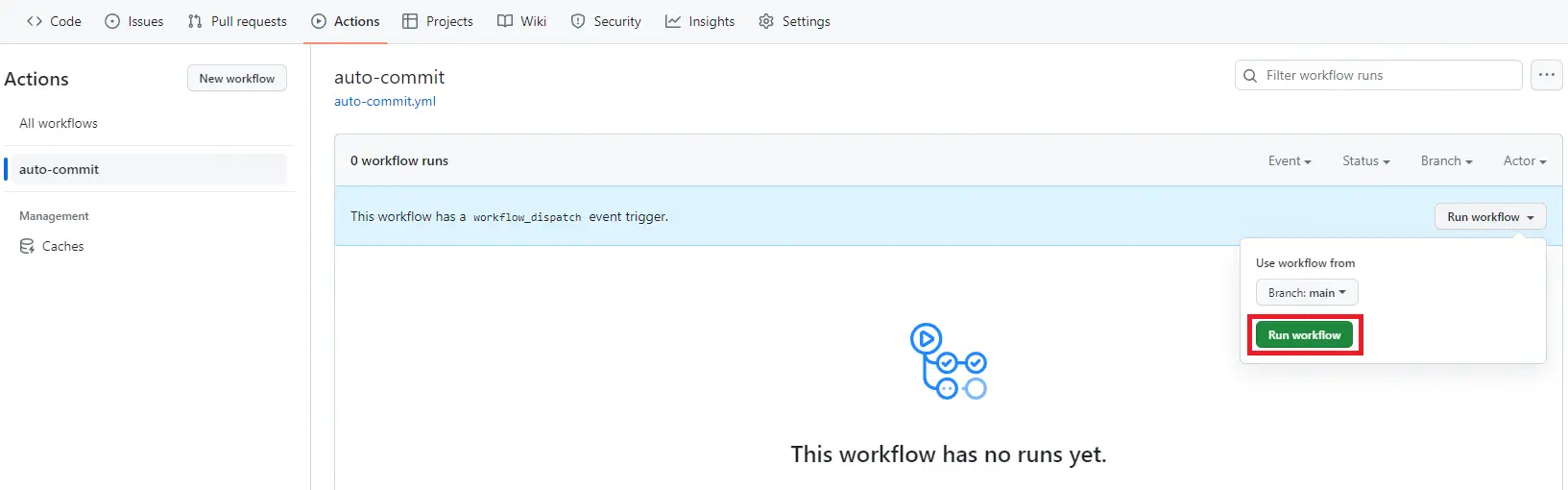 28 git push origin mainワークフローの手動実行と毎日の自動実行を設定しています。
