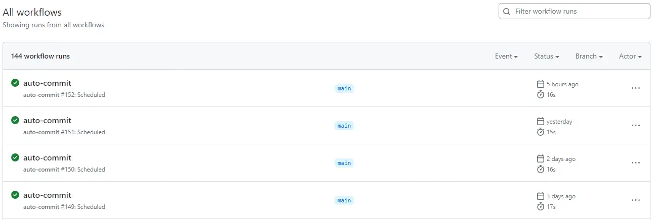 これで、自動で設定したActionが実行されるようになりました。画像から設定したActionが毎日実行されていることが分かります。