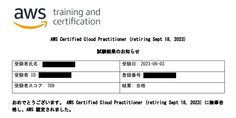 AWS Certified Cloud Practitioner(クラウドプラクティショナー)試験(CLF-C01)を2023年6月に受け合格しましたので、試験の対策・結果・感想などを合格体験記としてまとめたいと思います。