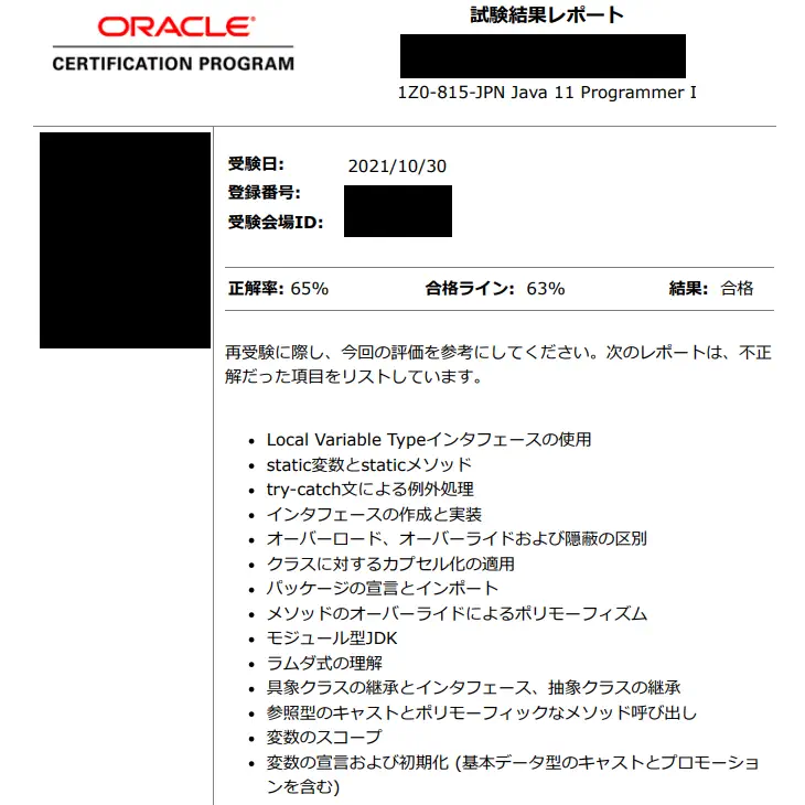 Oracle Certified Java Programmer Silver SE 11 認定資格(Java Silver)を2021年10月に受け合格しましたので、試験の対策・結果・感想などをまとめます。