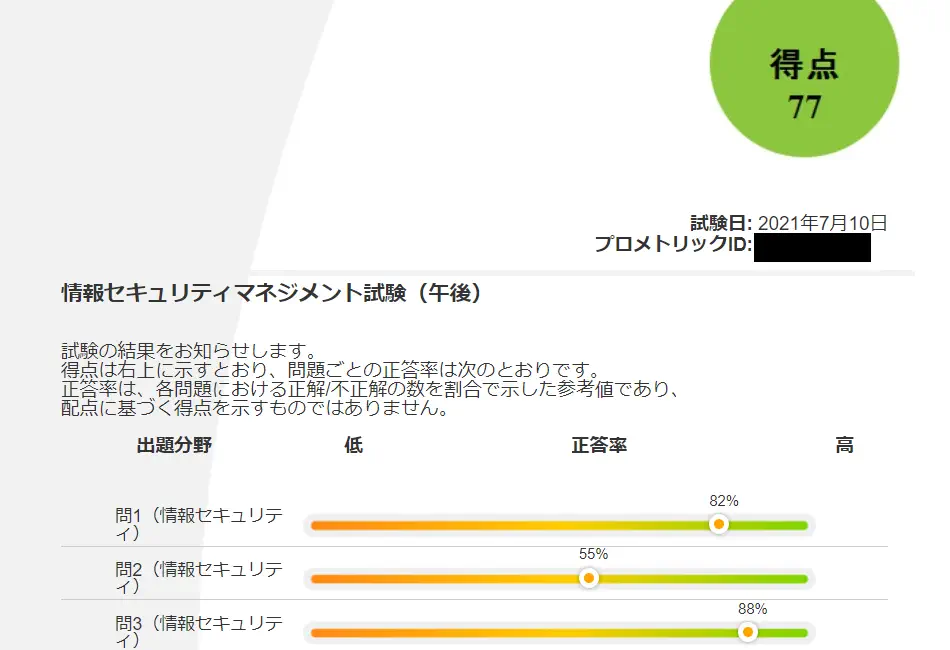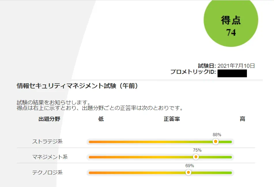 午前が74点、午後が77点で合格しました。午前はそこそこ勉強したのに午後より得点が低かった…。
