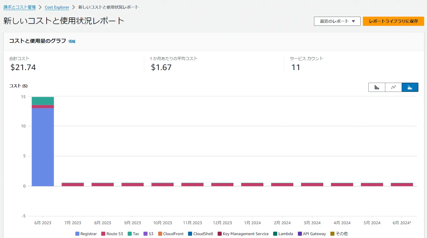 このサイト構成の場合に掛かる費用は、AWSでのRoute 53・S3・CloudFrontの利用代のみになります。費用はドル換算のため、為替レートによって変動はありますが、個人のブログサイト程度ならレンタルサーバーと比較して非常に低コストで運営ができます。
